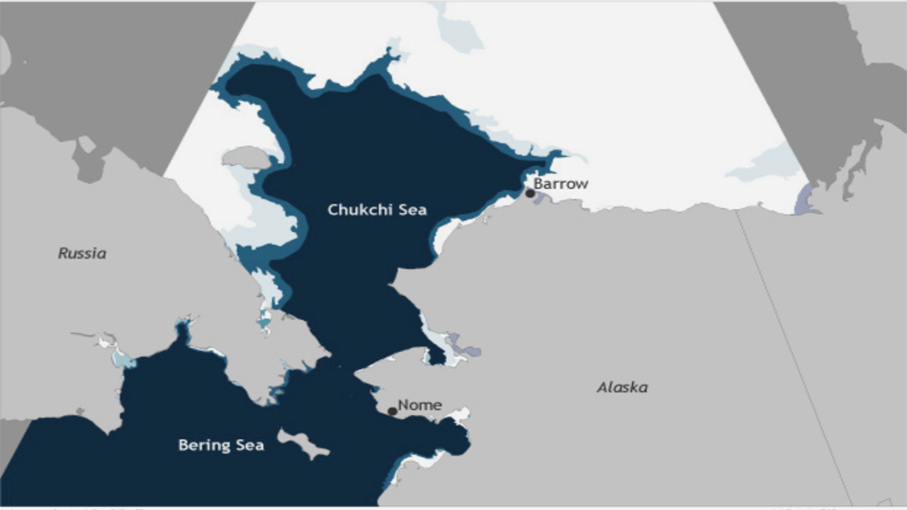 Rick Thoman del Servicio Meteorológico Nacional de Alaska alertó sobre algunas condiciones ambientales inusuales en las aguas de Alaska en noviembre. En los mares de Bering y Chukchi, donde el hielo marino debería comenzar su expansión invernal, miles de millas cuadradas de mar abierto se extienden desde la costa occidental del estado a fines del otoño de 2017. Es la extensión de hielo más baja registrada para esta época del año.